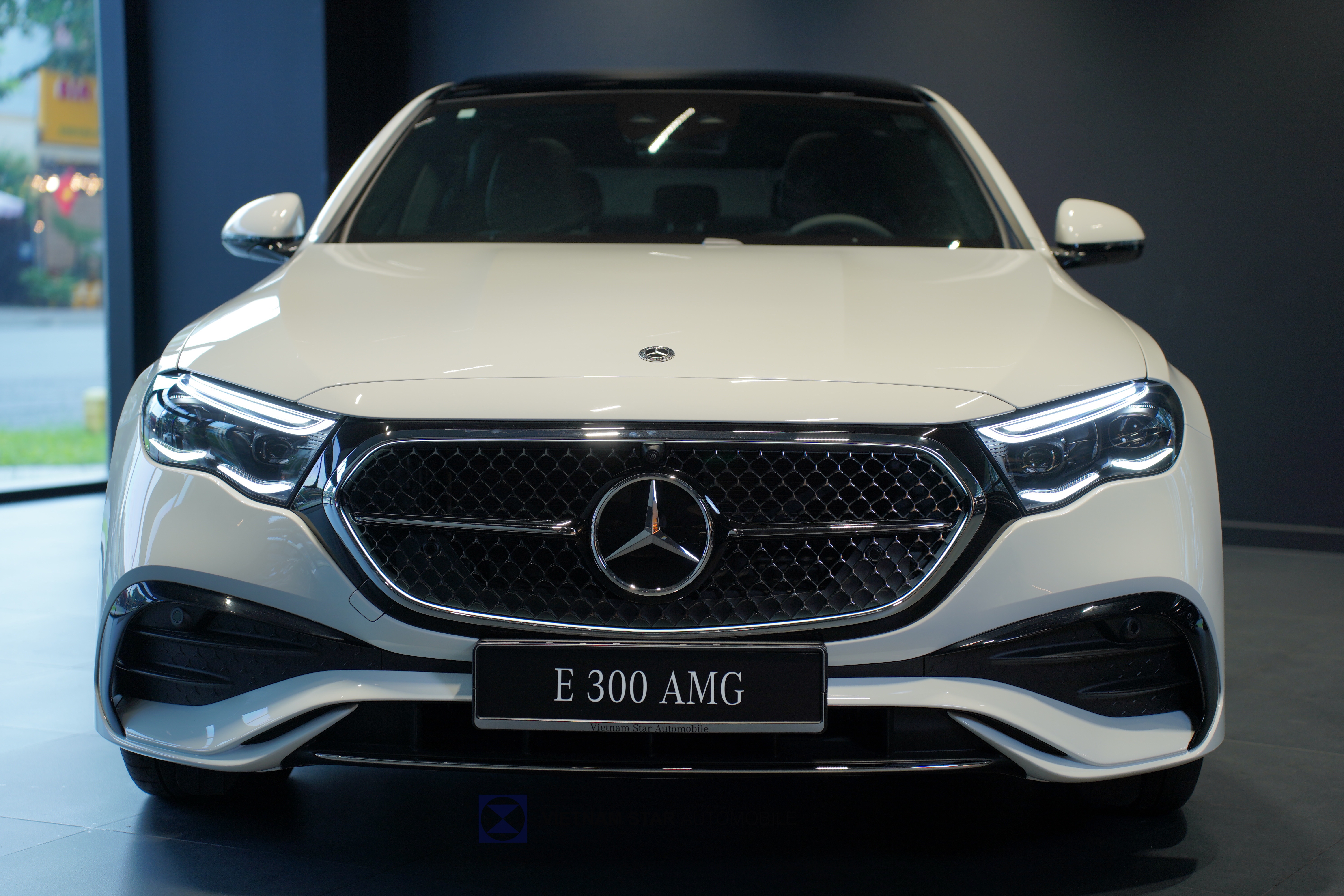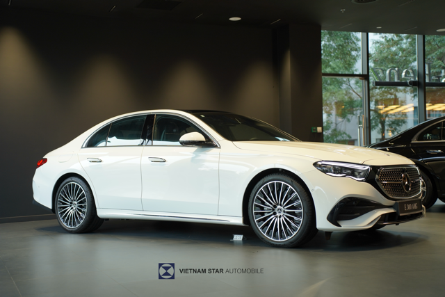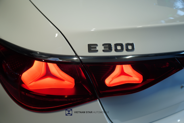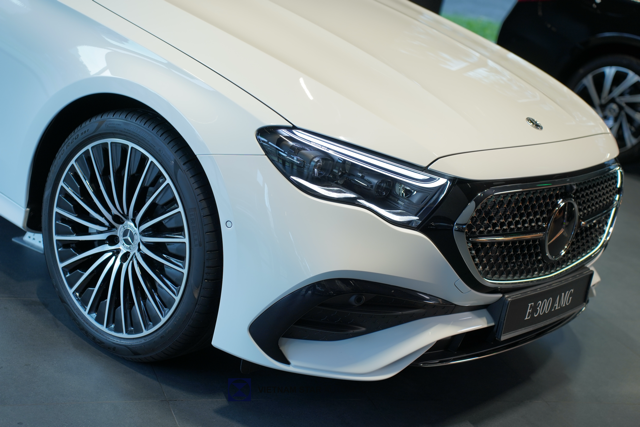 Phần đầu xe nổi bật là lưới tản nhiệt họa tiết ngôi sao Mercedes kèm viền phát sáng tạo điểm nhấn nổi bật ngay từ cái nhìn đầu tiên... Cụm đèn pha được thiết kế mới , trang bị công nghệ LED DIGITAL LIGHT tiên tiến nhất hiện nay. Phần cản trước AMG với thiết kế A-wing, hốc gió kích thước lớn mang đậm phong cách thể thao AMG cùng với 6 cảm biến góc rộng. Mâm hợp kim AMG 20 inch đa chấu – thiết kế thể thao, sang trọng, tôn lên sự bề thế và vững chãi của E300. Cửa hít cũng được trang bị trên mẫu xe này.