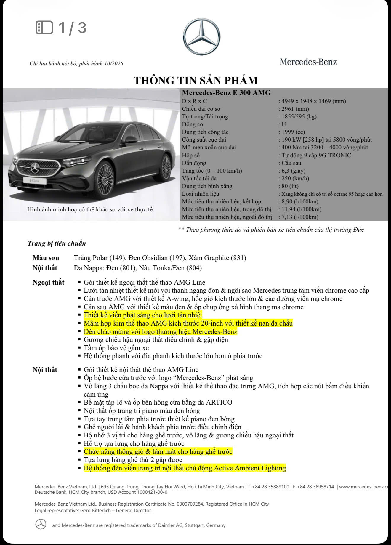 Xe Mercedes E 300 AMG sở hữu nhiều tính năng vượt trổi, với thiết kế sang trọng, hiện đại cùng hệ thống giải trí cao cấp, trang bị an toàn tối tân hứa hẹn sẽ mang lại cho khách hàng những trải nghiệm tuyệt vời nhất.