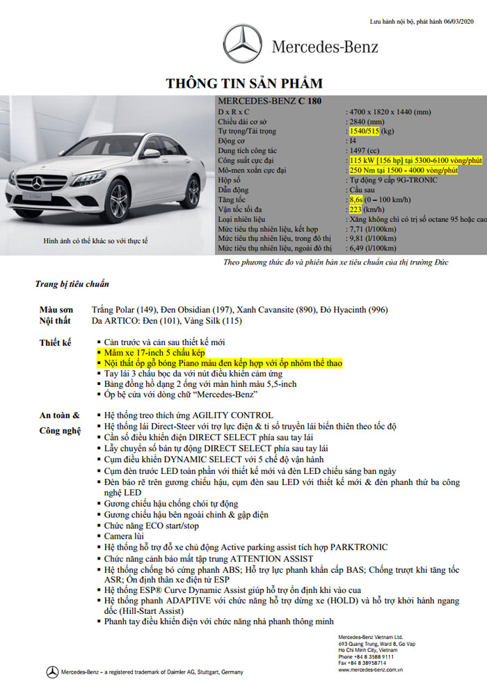 Là mẫu sedan hạng sang thương hiệu Ngôi sao ba cánh, Mercedes C 180 chưa bao giờ bị đánh giá thấp về tính năng an toàn. Phiên bản C-Class 2020 được nâng lên một tầm cao mới nhờ thừa hưởng những công nghệ an toàn mà trước đây chỉ có trên S-Class. Với giá bán cực kỳ cạnh tranh, thêm một lần nữa, Mercedes-Benz đã làm khó các đối thủ của mình trong phân khúc xe Sedan. Không chỉ gia tăng thêm sức cạnh tranh và duy trì vị thế độc tôn trong phân khúc sedan hạng sang cỡ nhỏ tại Việt Nam.