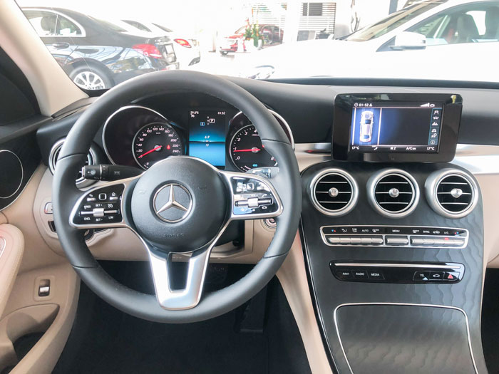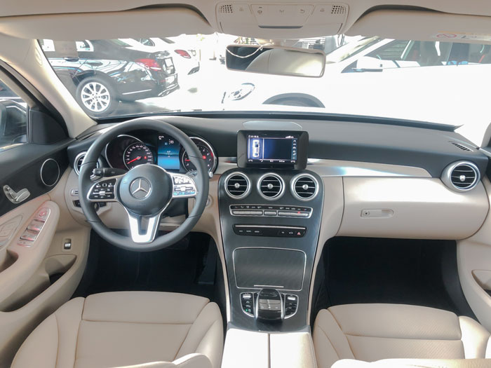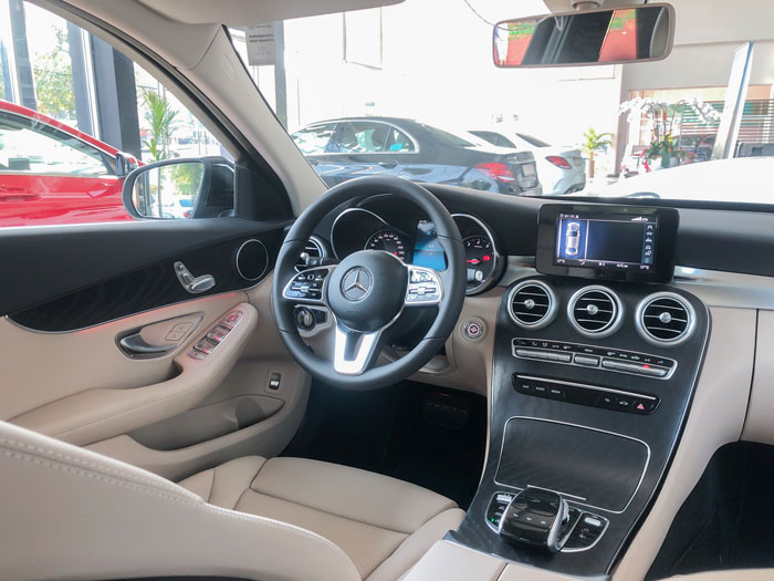 Vô lăng trên Mercedes C 200 Facelift 2019 được thiết kế mới với ba chấu được bọc da nappa, phía dưới là cần sang số điện Direct-Select kết hợp với lẫy chuyển số. Tích hợp các nút điều khiển hệ thống, nghe gọi điện thoải, điều khiển hệ thống giải trí. Bảng đồng hồ dạng ống với màn hình 5.5-inch hiển thị thông số kỹ thuật của xe khi vận hành. Ngoài ra một trang bị không thể thiếu có thể kể đến là chìa khóa thông minh và khởi động bằng nút bấm KEYLESS-START.
