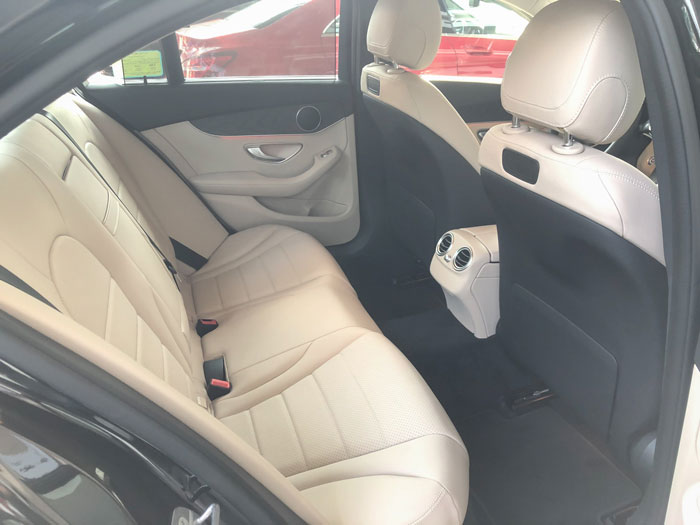 Xe Mercedes C 200 được trang bị ghế da ARTICO sang trọng với ba tùy chọn khác nhau: Đen, Vàng Silk. Ghế phía trước điều khiển điện. Hàng ghế phía sau thoải mái với khoảng để chân rộng rãi nhờ chiều dài cơ sở của xe tăng thêm 80mm so với thế hệ trước. Phía sau xe cùng có thêm màn che nắng kính sau điều chỉnh điện và rèm che nắng hai bên cửa sổ.