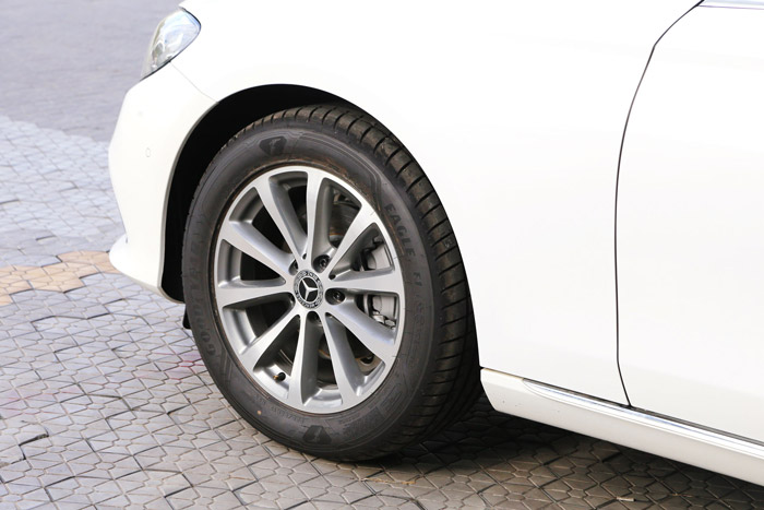 Phần thân xe với nẹp chỉ mạ chrome, tuy chỉ là chi tiết nhỏ nhưng làm cho chiếc xe thêm sang trọng. Xe Mercedes E 200 được trang bị bộ lazang 17-inch 10 chấu giúp chiếc xe thêm phần khỏe khoắn.