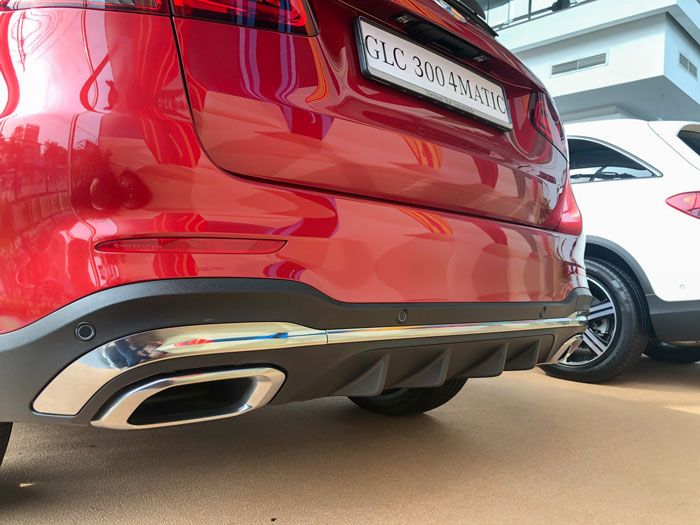 Cụm đèn hậu cũng được trang bị công nghệ LED với thiết kế mới làm cho chiếc xe nhìn cứng cáp hơn kết hợp cản sau được mạ crom với cánh thoát gió, tổng thể giúp phần đuôi xe mang dáng vẻ thanh thoát. Xe Mercedes GLC 300 được trang bị bộ lazang AMG 19-inch 5 chấu kép.